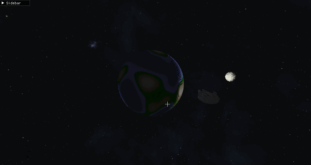 around the globe and shoot meteorites, while the sun (that lights up the scene) and a Millennium Falcon